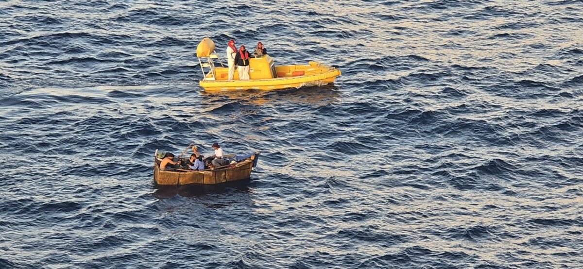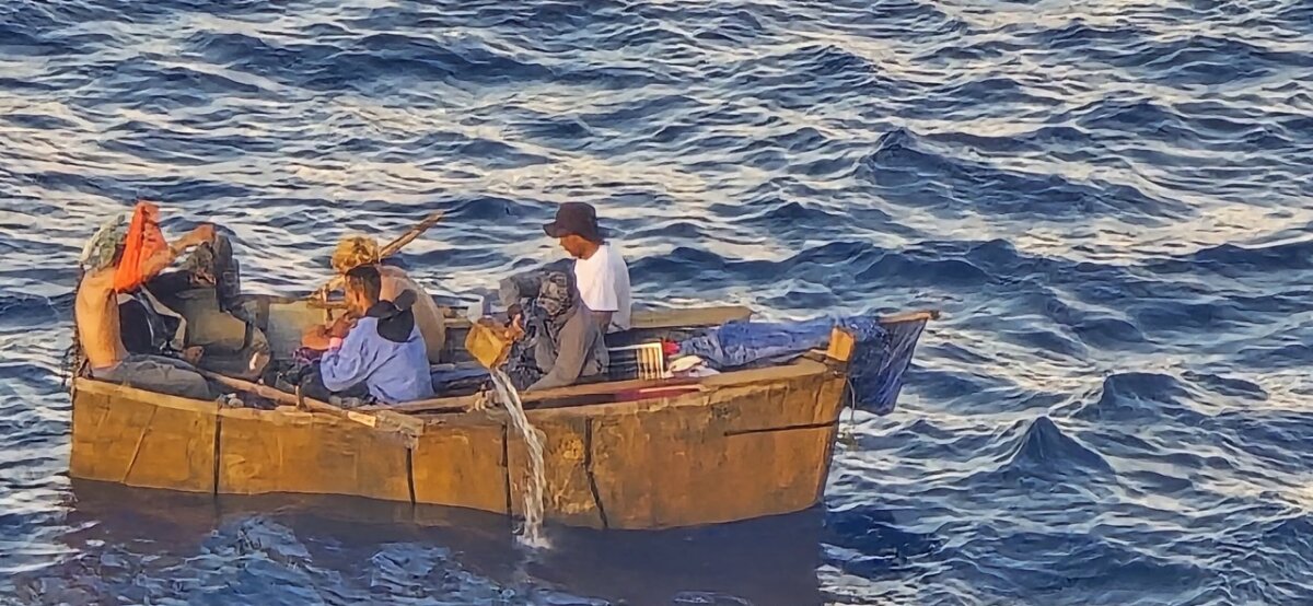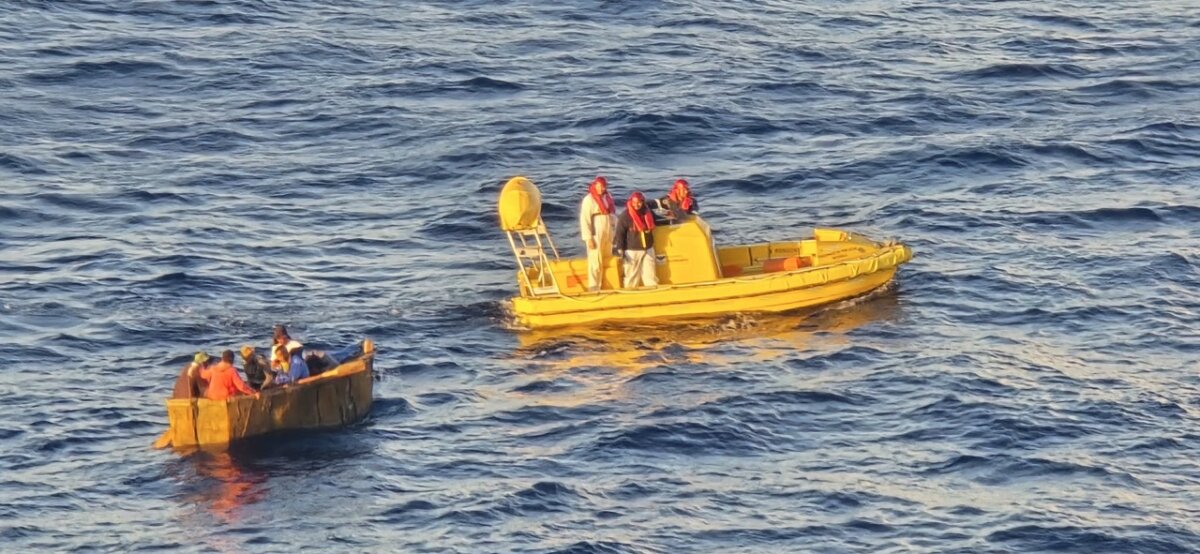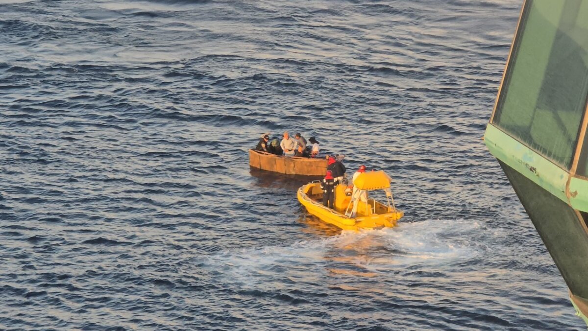Hoglander said the captain made an announcement addressing the situation, stating that the individuals aboard the distressed vessel were Cuban refugees. He continued, “Right now, they are taking two at a time. We are taking them to the next port.”